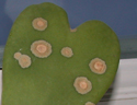 coincide with high moisture levels. Brown, irregularly-shaped spots form