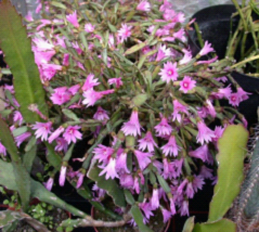 EASTER CACTIThe Easter Cacti are now known as Rhipsalidopsis or Hatiora.These produce their flowers in April and May, lasting for about six weeks, and will sometimes flower again in the autumn also. Cultivation is as for the Epiphyllum above, except that they should be kept cooler during the resting period from October until the buds become visible in the spring. Watering and feeding are then gradually increased and continued until late autumn. Easter cacti are more prone to segment drop on drying out than other epiphytes when watering is not regular.