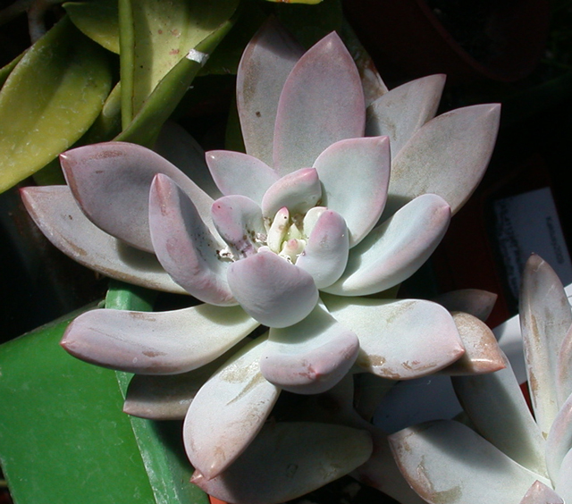 Mealybugs exude a white waxy substance that envelopes their entire pink-colored bodies. Their sap-sucking activity weakens and eventually kills severely infected plants. If not controlled, mealy bugs will very soon form large colonies in protected corners of cluster-forming cacti like rebutia, mammillaria, chamaecereus, and echinopsis. They will thrive in the axils where they are particularly indistinguishable from the axil hairs of some species like mammillaria. They will also locate themselves at the apex or on the stem base of species like echevera, crassula, faucaria, pleiospilos and other succulents.